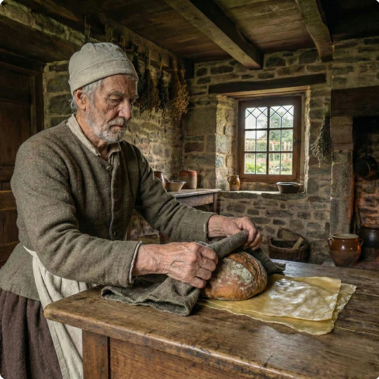 Molto prima dell’invenzione della plastica, i fornai custodivano già questo segreto. Avvolgere il pane in un panno di cotone pregiato e cera d’api è il metodo tradizionale per preservarne l'autentica fragranza nel tempo.