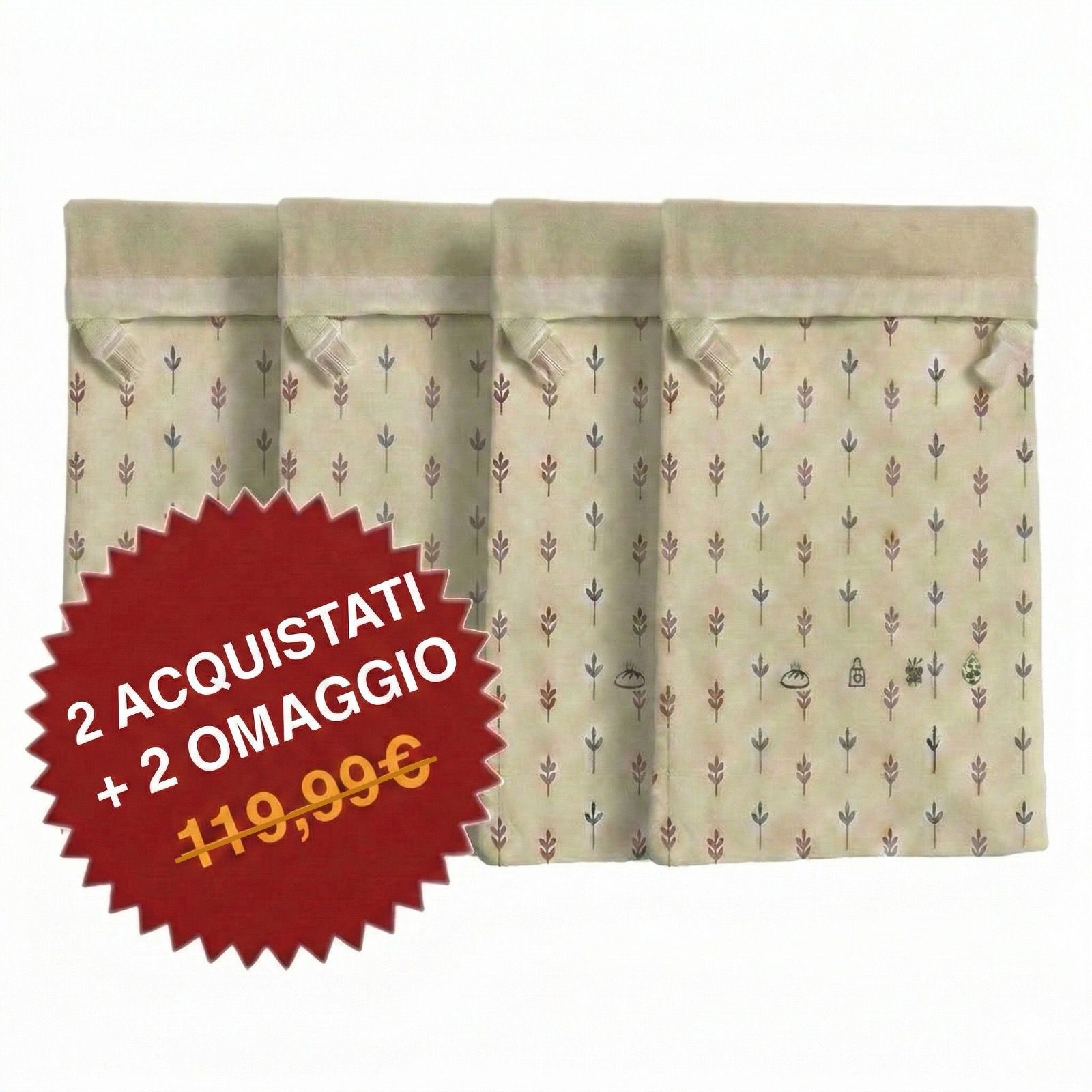 Ogni sacchetto misura 33 x 43 cm (Formato XL). È ideale per grandi pagnotte di lievito madre, pane cotto in pentola (Dutch oven) o due piccoli filoncini alla volta. Non c'è alcun rischio di schiacciare o comprimere la crosta.